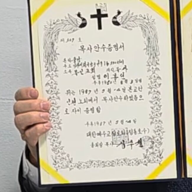본지는 이흥선 씨에게 그 증서를 발급한 교단과 연락처를 알려달라고 취재 문자를 25년 11월 25일에 보냈으나 아직까지 답이 없다.